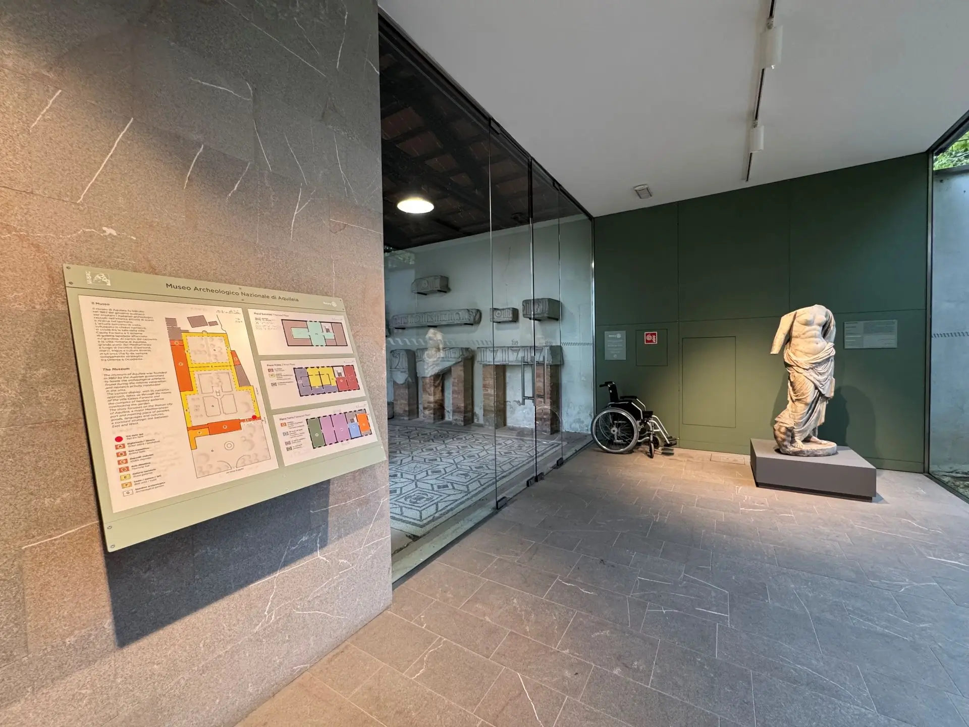 Per ciechi e ipovedenti è disponibile un sistema di audiodescrizioni, in italiano e inglese, che guidano l’esplorazione tattile autonoma di 11 reperti originali attualmente esposti lungo il percorso espositivo. L’applicazione funziona con beacon installati in sala e aiuta ad orientarsi lungo il percorso espositivo, agevolando l’esplorazione e la comprensione delle opere descritte.