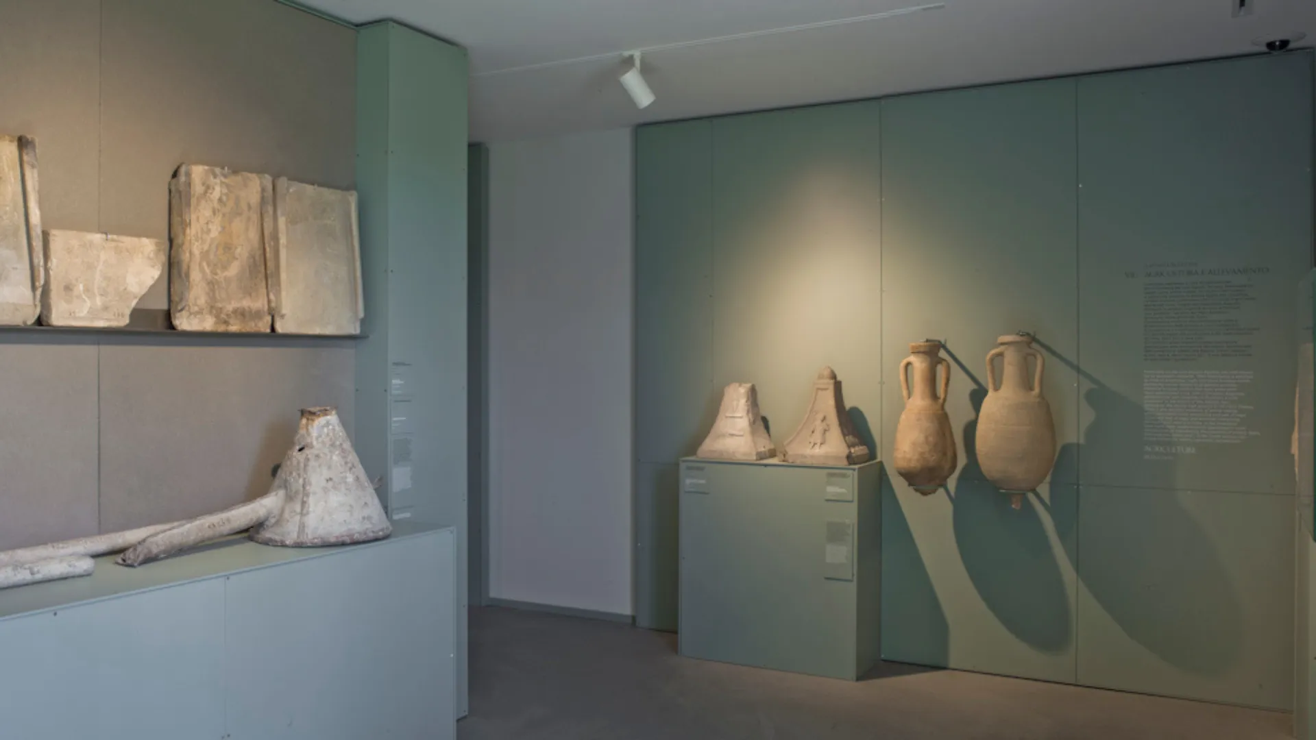 Due spazi più raccolti offrono al visitatore un approfondimento sulle merci in arrivo e in partenza dalla città antica e sui culti più diffusi, documentati da iscrizioni e oggetti che i fedeli dedicavano alle divinità e utilizzavano nel corso delle cerimonie religiose.