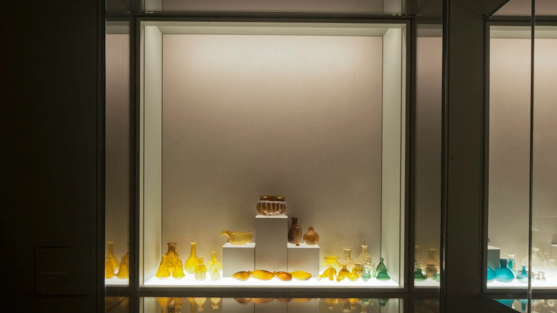 Come nella sezione precedente uno spazio raccolto offre un approfondimento su una delle eccellenze della collezione: i moltissimi reperti in vetro antico, d’importazione o di produzione locale, incantano il visitatore con i giochi di colore e le impalpabili trasparenze.