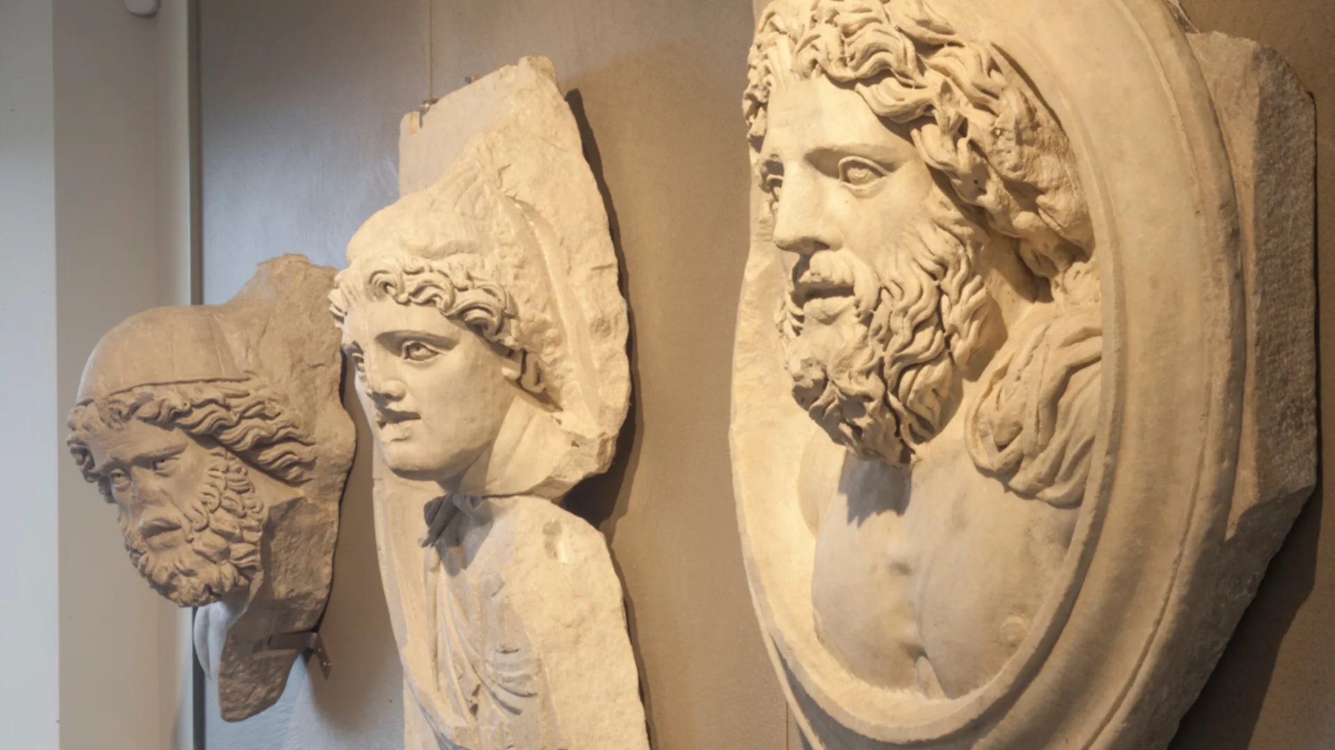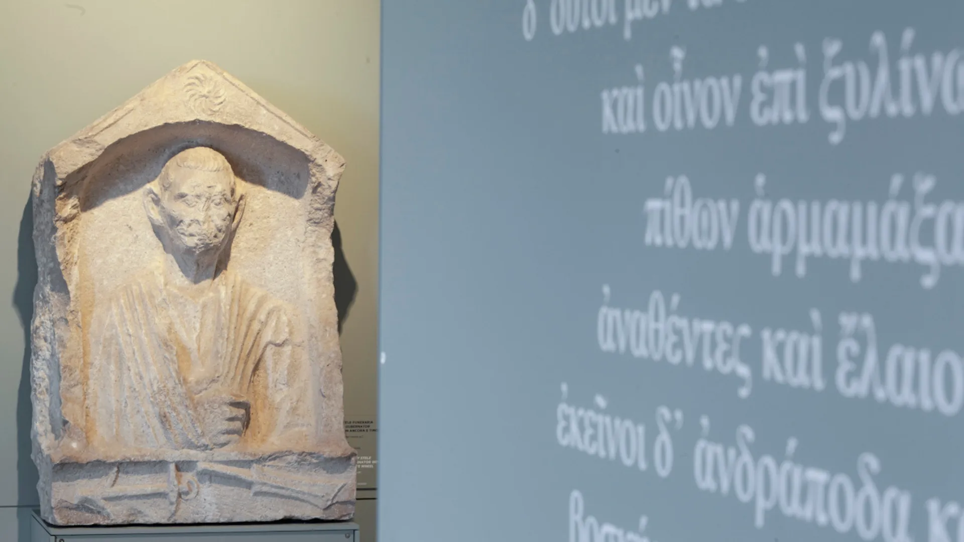La stele funeraria in calcare è uno dei reperti più iconici della collezione: la raffigurazione consente di entrare idealmente nella bottega di un fabbro che viveva e lavorava in città.
